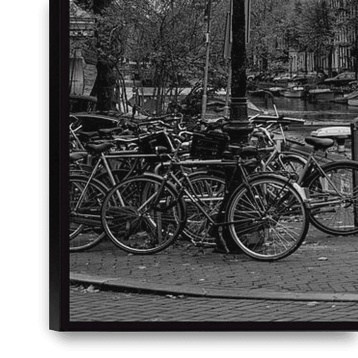 Wo immer Sie im Jordaan in Amsterdam hingehen oder spazieren gehen, können Sie den guten alten Wester sehen. Diese vierteilige Fotografie in Schwarz-Weiß ist der Beweis dafür! Die beiden äußeren Fotos wurden von der Prinsengracht und der Keizergracht aus aufgenommen. Das Foto mit dem Fahrrad fahrenden Mann wurde von der Eerste…