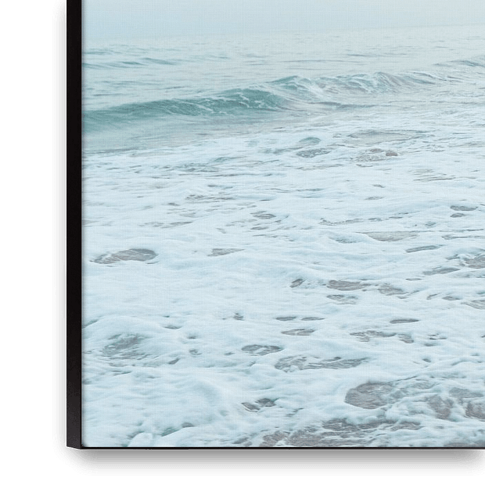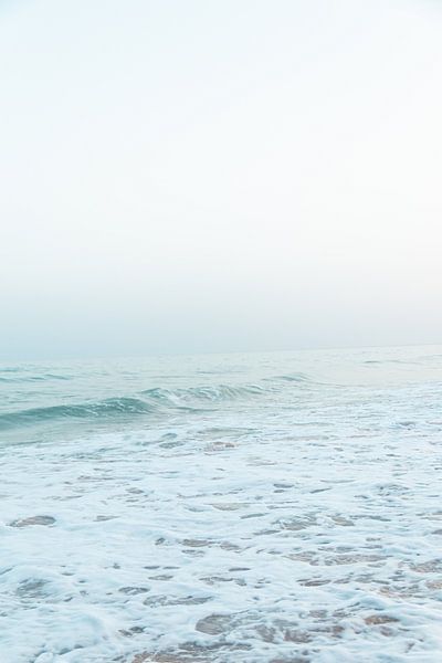 Wo das Wasser das Land küsst. Eine minimalistische Komposition, die sich auf die Textur von salzigem Schaum und die endlose Wiederholung von Wellen konzentriert. Perfekt für ein modernes, helles Interieur, schafft dieser Druck ein ruhiges, luftiges Gefühl.