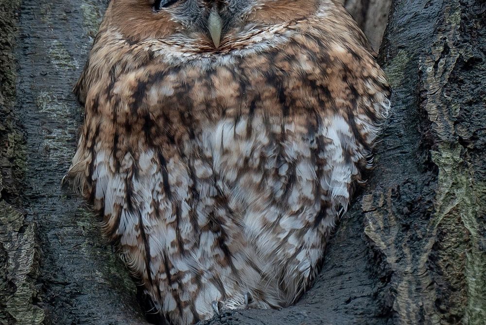 Versteckt in einer Buche. Eine schöne Begegnung im Wald.