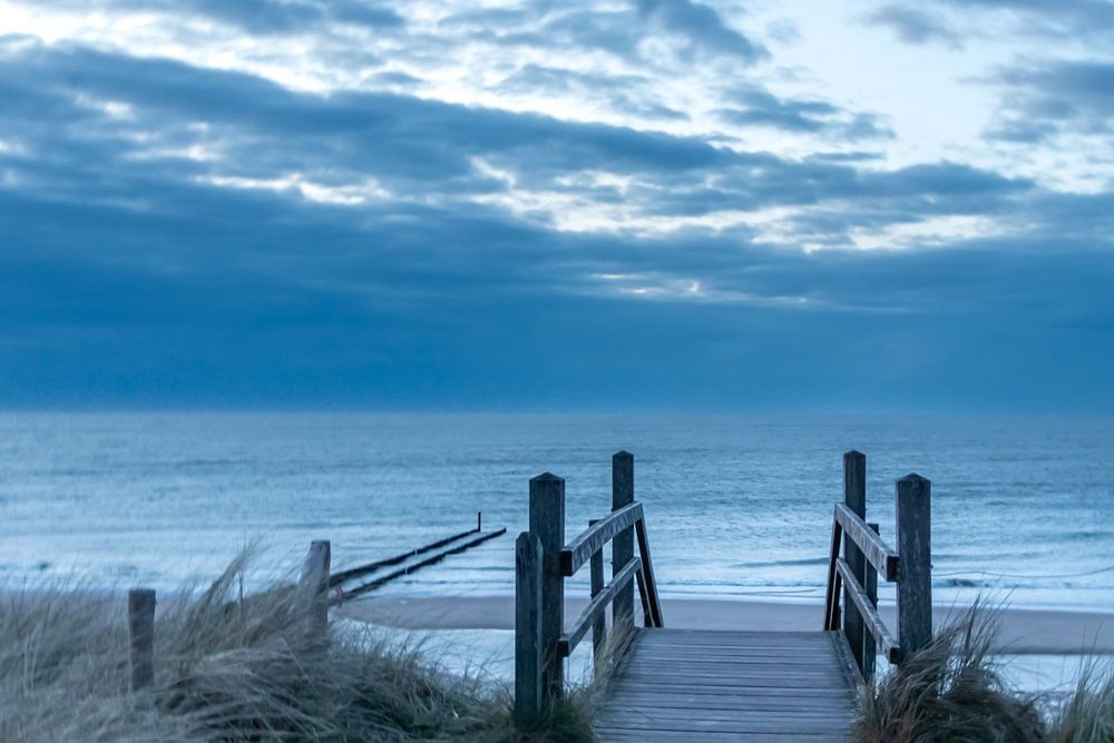 Und hier gibt es Urlaub mit Meerblick für die eigenen vier Wände. Das stürmische und rauhe Wetter zeigt einen zauberhaften Dünenblick mit unglaublichem Abendhimmel für hartgesottene Meeresliebhaber, die sich nicht von Wind und Wolken vertreiben lassen. Romantik pur und ein Garant für Meerweh!