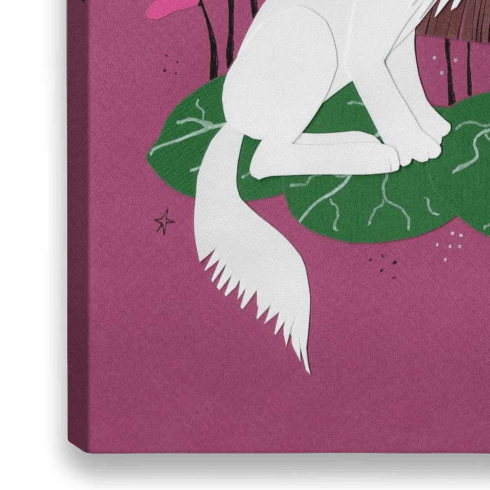 Bestelle dieses Blumen-Wandbild Der Wolf und das Mädchen von Karolina Grenczyk als Reproduktion auf Leinwand, Alu-Dibond, als Poster, Fototapete oder Acrylglasbild.