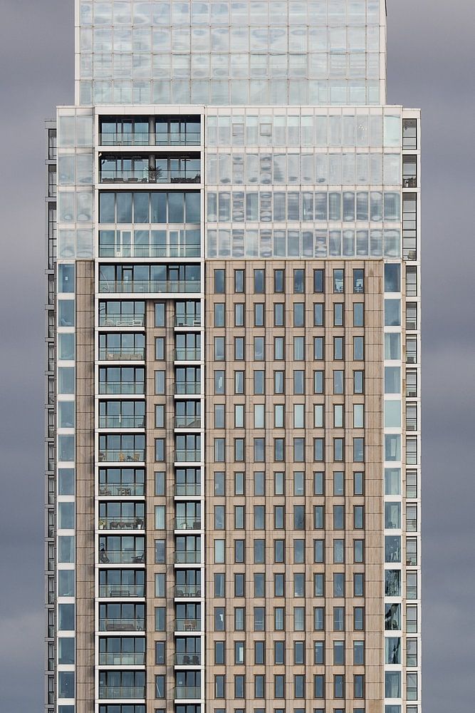 Das höchste Gebäude der Niederlande: De Zalmhaven I, Teil der Zalmhaven Towers. Vom Euromast aus fotografiert.