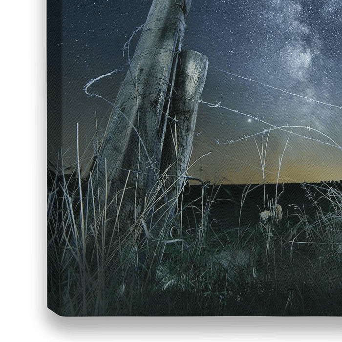 Ein alter Stacheldrahtzaun zeichnet sich vor der Milchstraße ab.