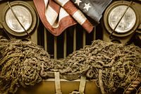 Antiker Willy's Jeep mit amerikanischer Flagge