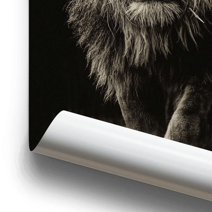 Bestelle dieses Löwen-Wandbild Der denkende Löwe von Rene Van der Made als Reproduktion auf Leinwand, Alu-Dibond, als Poster, Fototapete oder Acrylglasbild.
