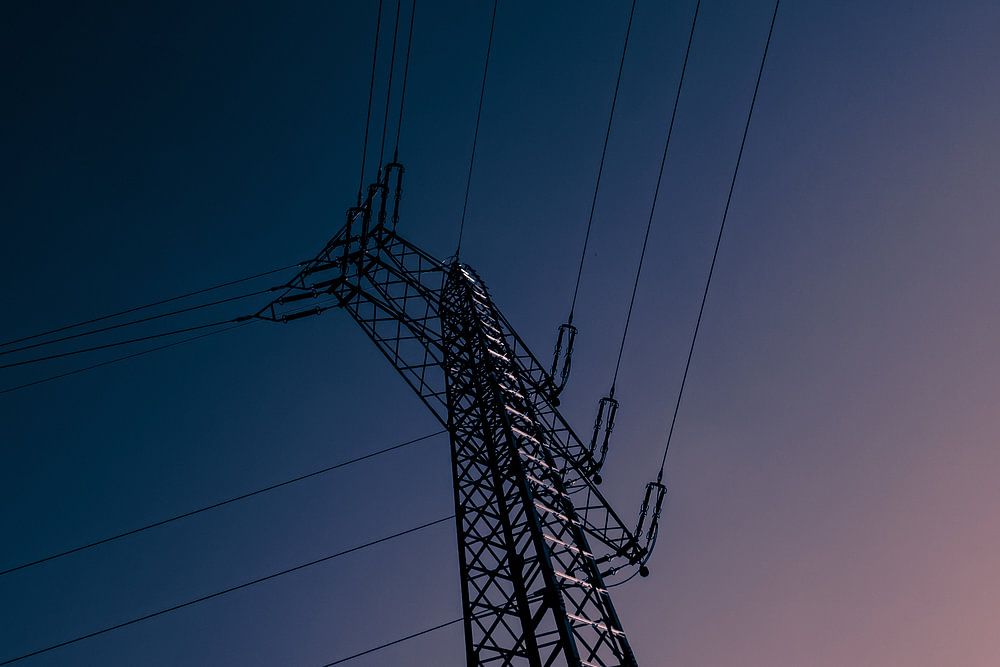 Ein einsamer Strommast bei seiner täglichen Arbeit in der freien Wildniss. Minimalismus pur!