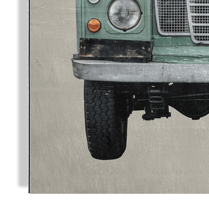 Ein schönes grünes Land Rover-Geländewagen der frühen Serie auf einem verwitterten Hintergrund