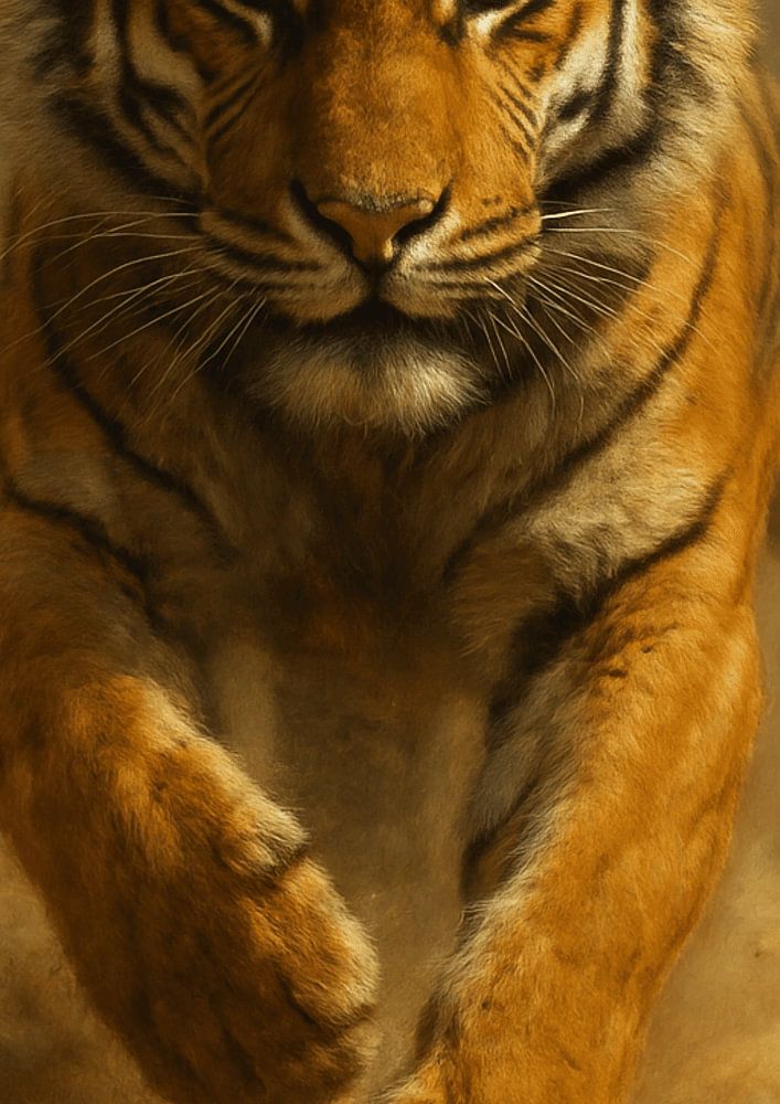 Spüren Sie den Rausch der ungezähmten Energie mit Tiger's Majestic Sprint. Dieses Kunstwerk fängt einen atemberaubenden Moment ein - ein Tiger in vollem Lauf, die Muskeln kräuseln sich, die Augen sind auf den Weg gerichtet, er verkörpert Mut, Konzentration und unaufhaltsamen Antrieb.