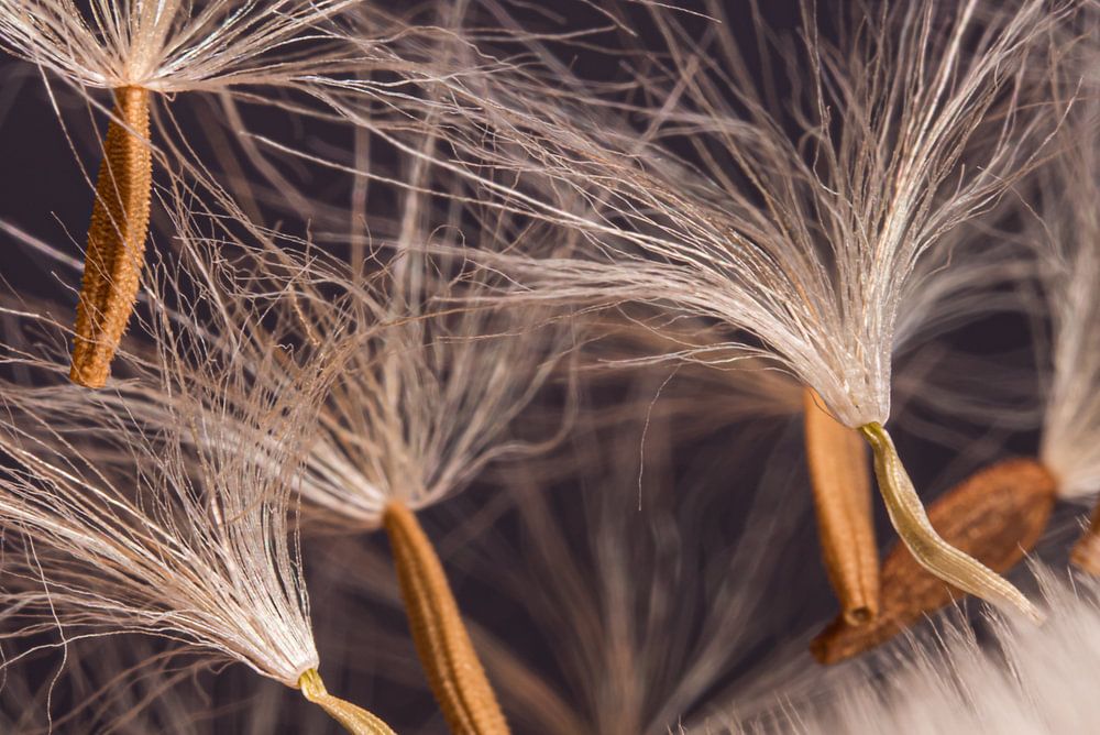 "Der tanzende Flaum" ist eine Makroaufnahme des Samenflaums einer Blume.