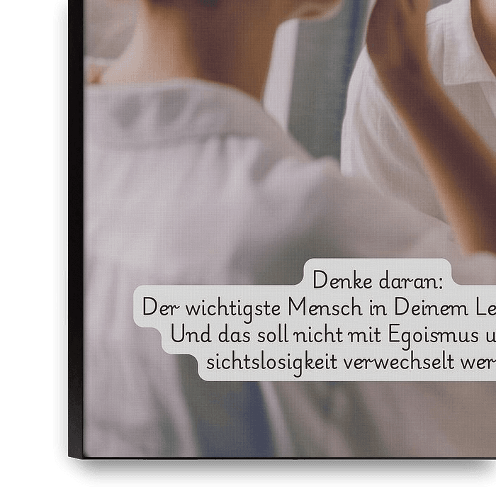 Sich um andere zu kümmern, ist natürlich auch wichtig und richtig - Aber nicht bis zur Selbstaufgabe! Der wichtigste Mensch in Deinem Leben bist nämlich immer noch Du. Und das sollte natürlich nicht mit Egoismus und Rücksichtslosigkeit gegenüber anderen Menschen verwechselt werden.