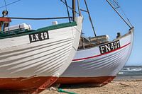 Bestelle das Foto Detail Fischerboote in Løkken von Sander Groenendijk als Reproduktion auf Leinwand, Alu-Dibond, als Poster, Fototapete oder Acrylglasbild.