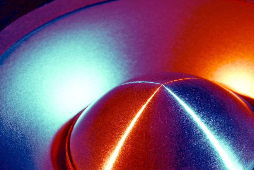 Farbig beleuchtetes, glänzendes Detail eines Lautsprechers