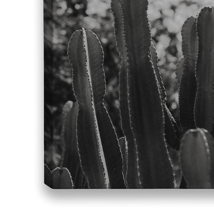 Bestelle dieses Landschafts-Wandbild Detailaufnahme eines Kaktus in Ibiza schwarz-weiß von Manon Visser als Reproduktion auf Leinwand, Alu-Dibond, als Poster, Fototapete oder Acrylglasbild.
