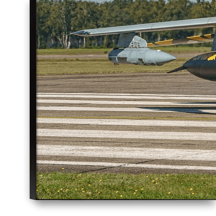 Bestelle das Foto Deutscher Panavia Tornado (46+38) mit Tigerlackierung. von Jaap van den Berg als Reproduktion auf Leinwand, Alu-Dibond, als Poster, Fototapete oder Acrylglasbild.