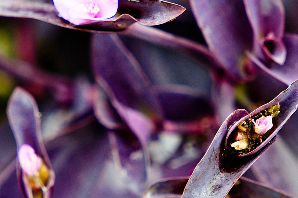 Diese Fotografie stellt eine einzigartige tropische Pflanze in den Mittelpunkt, die für ihr tiefviolettes Laub bekannt ist, das sofort ins Auge fällt. Inmitten dieses Teppichs aus schlanken, glänzenden Blättern erscheinen kleine, zarte Blüten in sanften Farbtönen von Rosa bis Lila. Die Schlichtheit dieser Blütenstände steht in einem wunderbaren Kontrast zur Farbintensität der Blätter und schafft eine visuelle Harmonie zwischen Stärke und Zerbrechlichkeit. Die natürliche Komposition unterstreicht die subtile Schönheit dieser kleinen, fast verborgenen Blüten, die schüchtern aus der schützenden Hülle des purpurfarbenen Laubs hervorzutreten scheinen. Diese Pflanze, die häufig als ornamentaler Bodendecker verwendet wird, ist ein perfektes Beispiel für den ästhetischen Reichtum tropischer Arten, die eine bemerkenswerte vegetative Stärke mit diskreten, aber eleganten blumigen Akzenten kombinieren können. Das vom Objektiv eingefangene natürliche Licht betont die violetten und rosafarbenen Nuancen und liefert ein vibrierendes Bild, auf dem die Natur wieder einmal ihre Fähigkeit offenbart, mit unerwarteten Kontrasten zu überraschen. Ein einfaches und raffiniertes Schauspiel, das die ganze botanische Delikatesse verkörpert, die im Botanischen Garten von Bogor beobachtet werden kann.