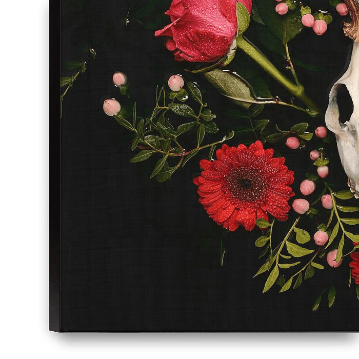 Bestelle dieses Blumen-Wandbild Dia de los Muertos - Hirsch-Schädel - Reebok Geweih von Nikki Segers als Reproduktion auf Leinwand, Alu-Dibond, als Poster, Fototapete oder Acrylglasbild.