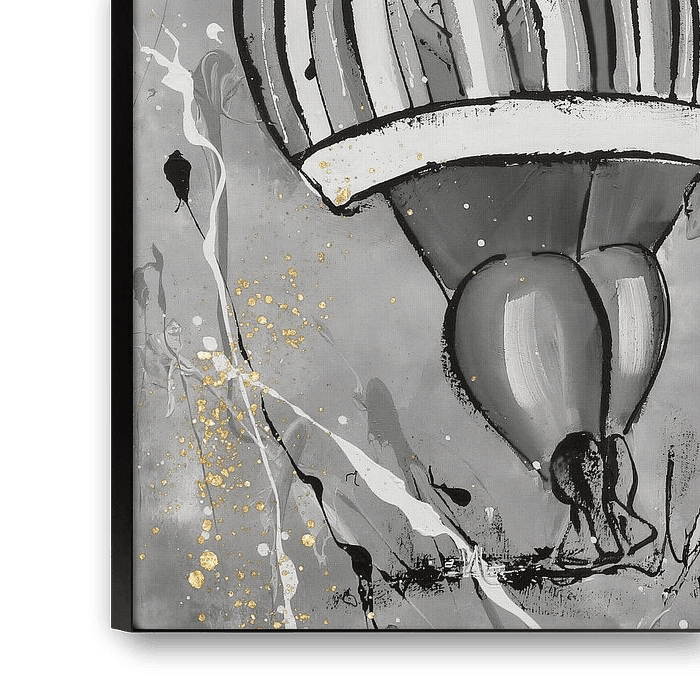 Das Gemälde ist durchdrungen von zeitloser Eleganz, wobei die Wahl von Schwarz-Weiß einen kraftvollen Kontrast schafft, der die Konturen der molligen Damen auf einzigartige Weise betont. Die subtilen goldenen Töne fügen der Szene eine Prise Glamour hinzu und verleihen ihr einen raffinierten und luxuriösen Charakter.