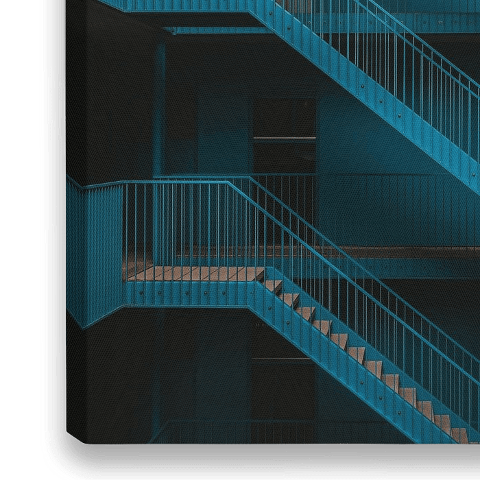 Bestelle dieses abstrakte Wandbild Die Blaue Wasserfall-Treppe von Maikel Claassen Fotografie als Reproduktion auf Leinwand, Alu-Dibond, als Poster, Fototapete oder Acrylglasbild.