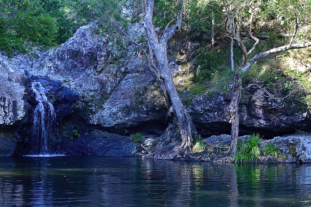 Angekommen bei den Rock Pools im Kondalilla National Park, Queensland, Australien. Schöner Teil des Parks, aber eine lange Wanderung nach unten, um dorthin zu gelangen.