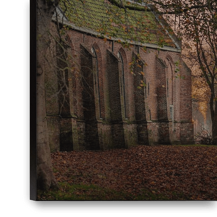 Bestelle dieses Landschafts-Wandbild Die Grüne Kirche in Lambertschaag in der Abendsonne von Marijke Trienekens als Reproduktion auf Leinwand, Alu-Dibond, als Poster, Fototapete oder Acrylglasbild.