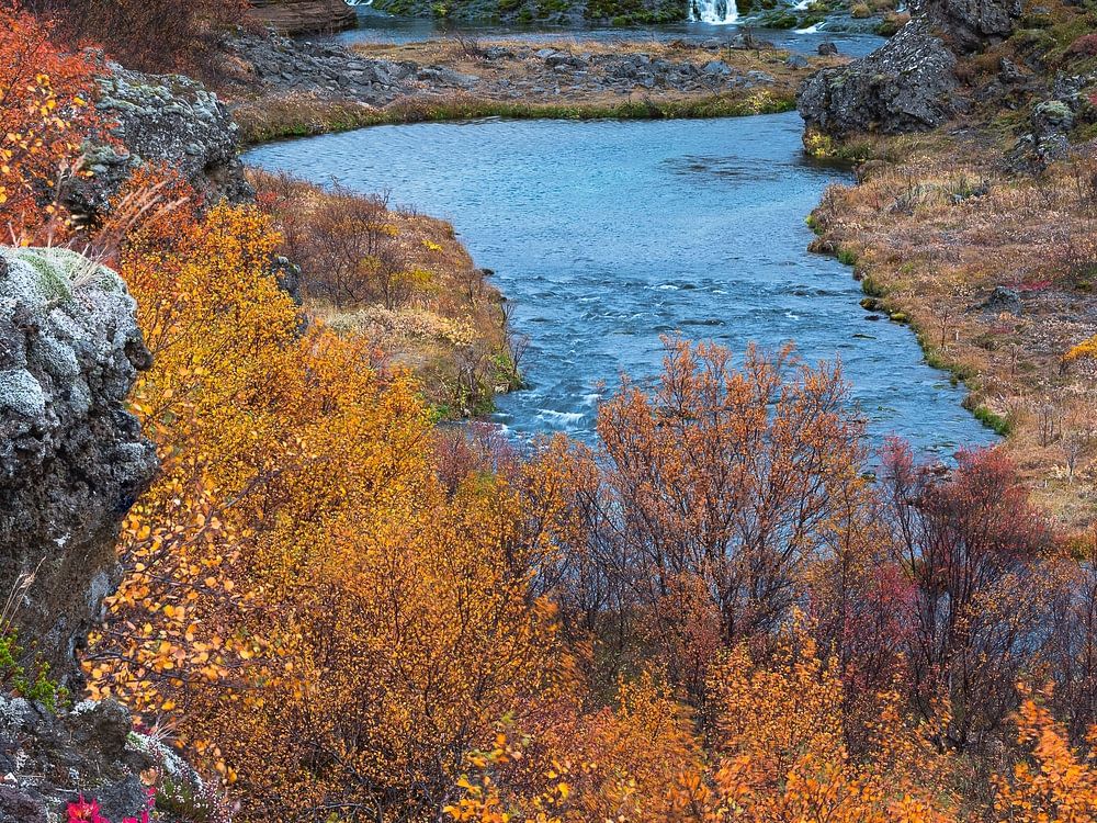 Gjáin im Tal Þjórsárdalur im Südwesten Islands ist ein wunderschönes Gebiet mit mehreren Wasserfällen und atemberaubenden Orten mit Basaltfelsen und kleinen Seen.