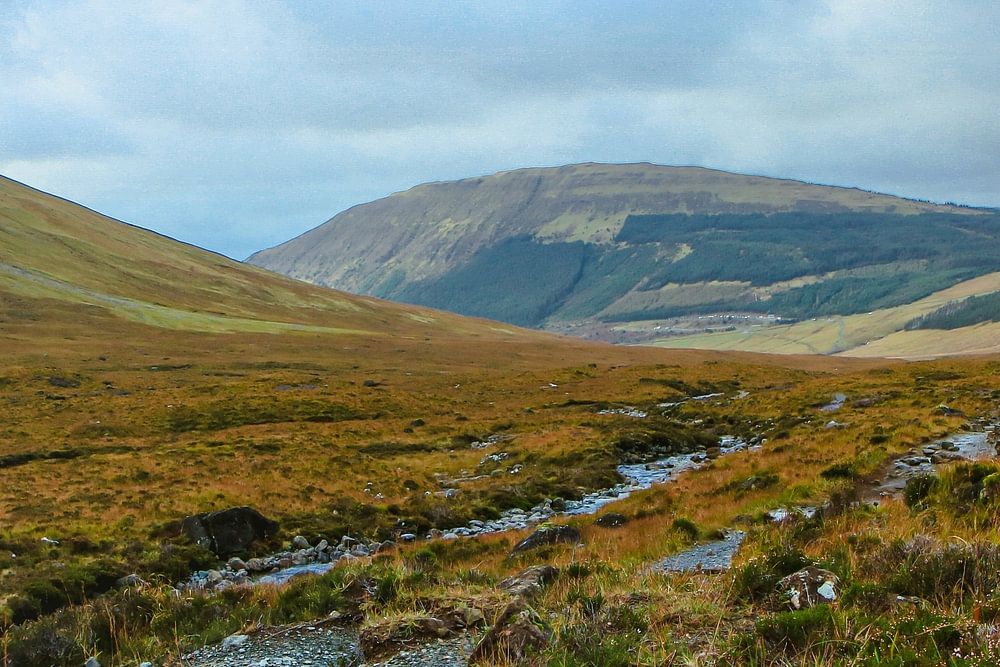 Die menschenleere Weite der schottischen Highlands. Isle of Skye. Die Highlands, das schottische Hochland, sind berühmt für ihre malerische Landschaft. Die Highlands sind ein Gebiet im Nordwesten Schottlands. Die dortige Landschaft ist von Bergen und Mooren geprägt.