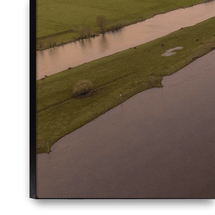 Bestelle dieses Landschafts-Wandbild Die IJssel mit überquellenden Auen bei Zwolle bei Sonnenschein von Sjoerd van der Wal Fotografie als Reproduktion auf Leinwand, Alu-Dibond, als Poster, Fototapete oder Acrylglasbild.