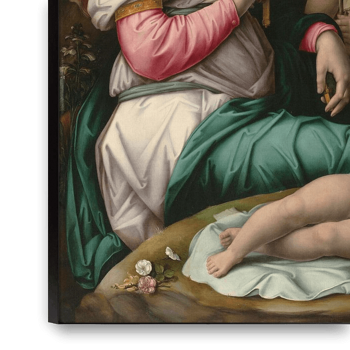 Bestelle Die Jungfrau und das Kind mit dem jungen Heiligen Johannes dem Täufer, Bachiacca als Reproduktion auf Leinwand, Alu-Dibond, als Poster, Fototapete oder Acrylglasbild.