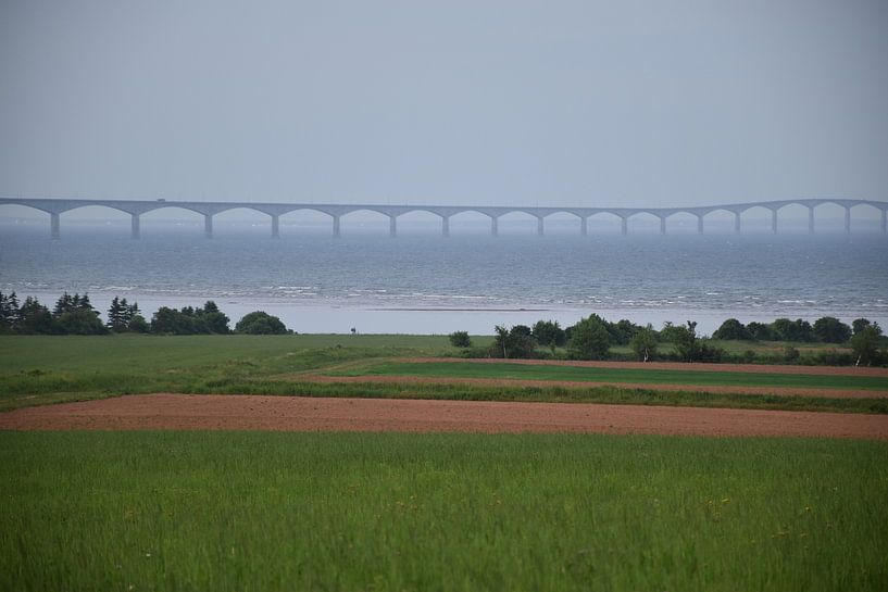 Bestelle das Foto Die Konföderationsbrücke im Sommer von Claude Laprise als Reproduktion auf Leinwand, Alu-Dibond, als Poster, Fototapete oder Acrylglasbild.