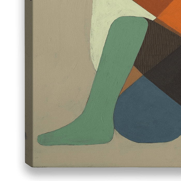 In dem Kunstwerk bilden zwei abstrakte menschliche Figuren durch ihre Umarmung eine neue Form. Das Werk besteht aus mehreren Farbschichten, die für Tiefe und Struktur sorgen. Jede Komponente hat ihre eigene Stimmung, Form und geometrische Beziehung zueinander. Zwei Komponenten sind mit kleinen vertikalen Strichen gefüllt, ein Hinweis…