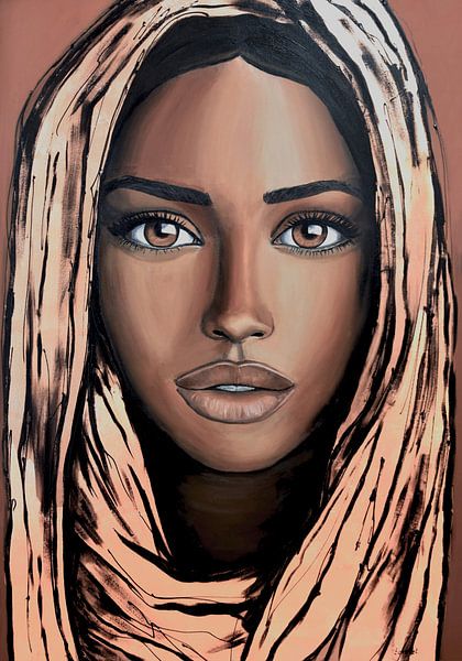 "The Power of Tranquillity" fängt die tiefe, ruhige Selbsterkenntnis ein, die in dem Porträt zum Ausdruck kommt. Das Kunstwerk zeigt eine Frau, die in warme, erdige Töne und einen Mantel gehüllt ist, der sowohl Schutz als auch Geheimnis ausstrahlt. Ihr Blick ist intensiv, aber nicht zwingend - eher offen und präsent. Sie blickt nicht…