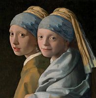 Dieses Werk vereint das Mädchen mit dem Perlenohrring und den Mädchenkopf, die beide von Johannes Vermeer gemalt wurden. Mit dem Kopfschmuck, den das Mädchen trägt, sieht es noch mehr wie eine frühe Version des weltberühmten Gemäldes aus. Endlich Kunst mit einem Augenzwinkern! Über den Bildermacher: Als geborener und aufgewachsener…