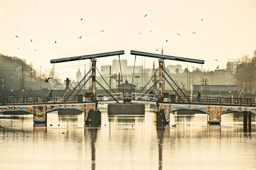 Bestelle dieses Vögel Wandbild Die Magere Brücke über die Amstel in Amsterdam von Frans Lemmens als Reproduktion auf Leinwand, Alu-Dibond, als Poster, Fototapete, ArtFrame oder Acrylglasbild, maßgefertigt in höchster Qualität.
