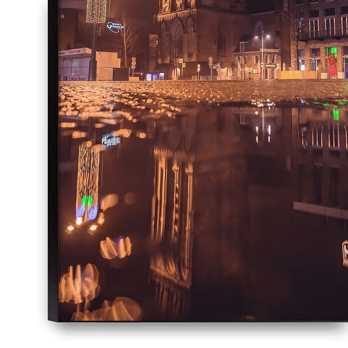 Bestelle das Foto Die Martinitoren in der Nacht auf dem Grote Markt Groningen von Hessel de Jong Fotografie als Reproduktion auf Leinwand, Alu-Dibond, als Poster, Fototapete oder Acrylglasbild.