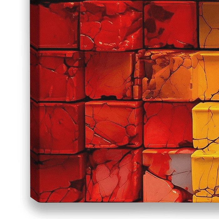 Buntes abstraktes Kunstwerk mit Quadraten in verschiedenen Farben. Ein detailliertes Kunstwerk, das die leuchtenden Farben der einzelnen Quadrate zeigt und eine künstlerische Komposition schafft, die freudige Gefühle hervorruft.