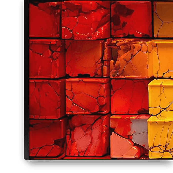 Buntes abstraktes Kunstwerk mit Quadraten in verschiedenen Farben. Ein detailliertes Kunstwerk, das die leuchtenden Farben der einzelnen Quadrate zeigt und eine künstlerische Komposition schafft, die freudige Gefühle hervorruft.