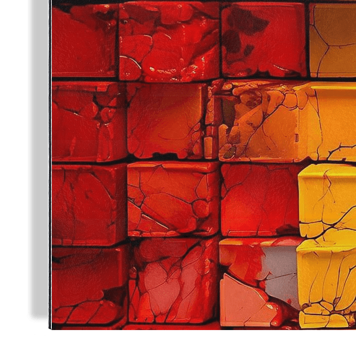 Buntes abstraktes Kunstwerk mit Quadraten in verschiedenen Farben. Ein detailliertes Kunstwerk, das die leuchtenden Farben der einzelnen Quadrate zeigt und eine künstlerische Komposition schafft, die freudige Gefühle hervorruft.