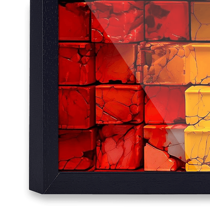 Buntes abstraktes Kunstwerk mit Quadraten in verschiedenen Farben. Ein detailliertes Kunstwerk, das die leuchtenden Farben der einzelnen Quadrate zeigt und eine künstlerische Komposition schafft, die freudige Gefühle hervorruft.