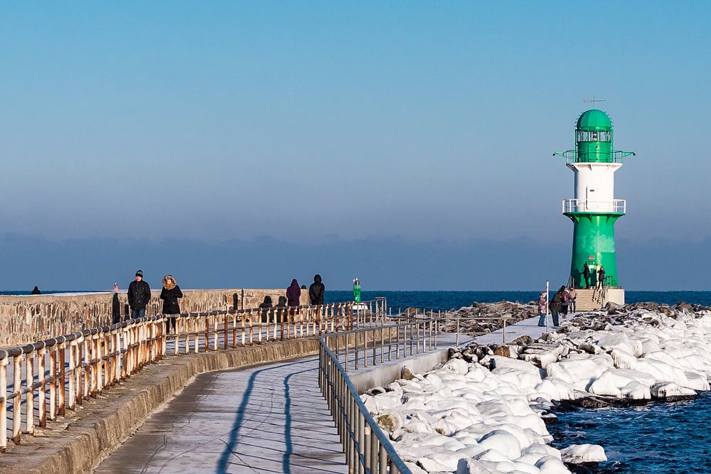 Die Mole in Warnemünde im Winter.