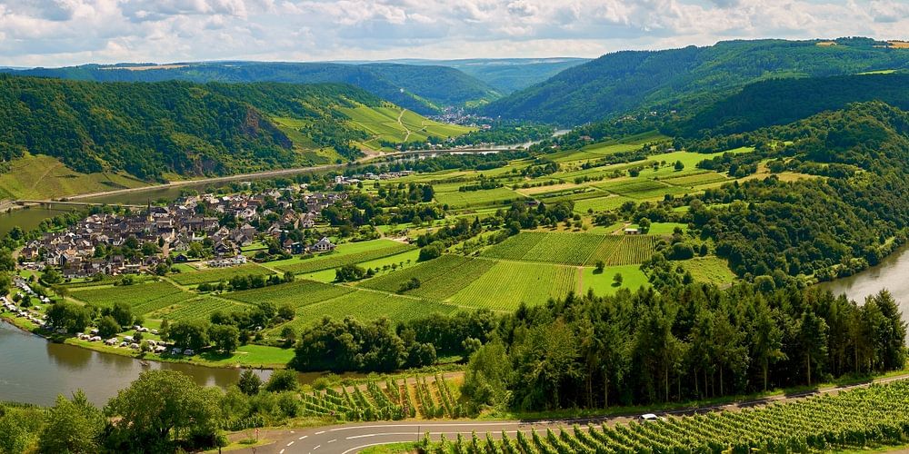 Moselschleife mit Blick auf Kröv und Traben-Trarbach im Hintergrund.