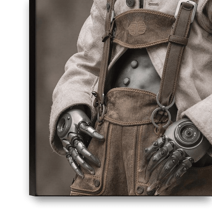 Dieses Bild zeigt eine künstliche Figur, die eine menschliche Rolle nicht nur trägt, sondern bewusst inszeniert. Die Haltung ist locker, beinahe selbstverständlich. Hände ruhen an der Hüfte, der Oberkörper ist leicht gedreht. Es ist die Pose einer Person, die weiß, wie sie wahrgenommen werden möchte. Genau darin liegt die subtile…
