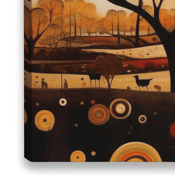 Ein farbenfrohes digitales Gemälde einer Oase in Afrika im Wald im Jugendstil. Das Werk verleiht Ihrem Interieur einen warmen und klassischen Look!