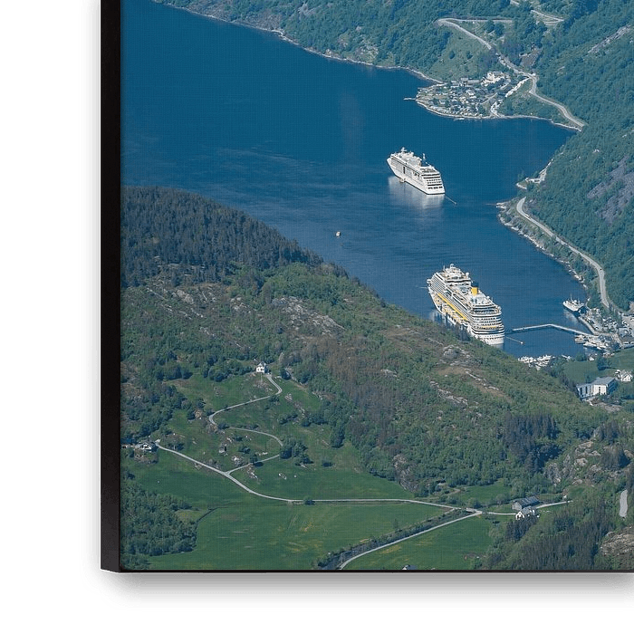 Einer der berühmtesten Fjorde Norwegens ist der Geirangerfjord. Dieser schöne Fjord, der auf der Liste des UNESCO-Weltkulturerbes steht, hat beeindruckende, steile Bergwände, die sich aus dem Wasser erheben. Viele Wasserfälle stürzen entlang dieser Bergwände, einer davon ist der Gjerdefossen, den Sie oben links auf dem Foto sehen.