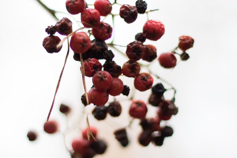 Zweige mit schönen roten Beeren im Wald von Hellendoorn.