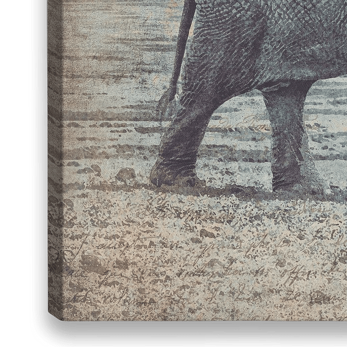 einsamer Elefant auf dem Weg durch die Savanne Illustration Mixed Media Style