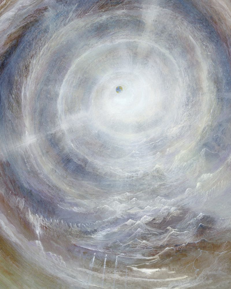 Dieses faszinierende Gemälde öffnet ein Fenster zu einer Welt, die jenseits unserer Vorstellungskraft liegt. Eine gewaltige Spirale windet sich ins Unendliche, in deren Zentrum ein winziger Punkt leuchtet – unsere Heimat, die Erde, umgeben von einem sanften Lichtstrahl. Dieser Kontrast zwischen der Kleinheit unseres Planeten und der majestätischen Größe der Spirale erzeugt ein Gefühl der Ehrfurcht und regt den Betrachter zum Nachdenken über die schier unendlichen Ausmaße des Universums an.