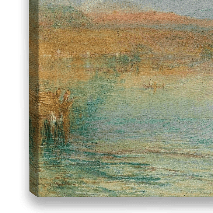Der junge J. M. W. Turner besuchte die Schweiz zum ersten Mal 1802. Im folgenden Jahrzehnt war die alpine Landschaft das Thema für viele seiner Ölbilder und Aquarelle. Eine anhaltende Affinität zur spektakulären Landschaft der Alpen inspirierte seine späteren Besuche in den frühen 1840er Jahren. Turners späte Aquarelle evozieren die Heiterkeit und Unermesslichkeit der Schweizer Landschaft in einigen der überzeugendsten und strahlendsten Kompositionen seiner Karriere. Die Rigi, einer der berühmtesten Berge der Schweiz, überragt den See östlich von Luzern. Mit ihren nur 1780 Metern ist sie nicht einer der höchsten Gipfel der Schweizer Alpen, aber die herrlichen, ungestörten Ausblicke, die ihre isolierte Lage und die Schönheit der Landschaft bieten, ziehen seit langem abenteuerlustige Touristen an.