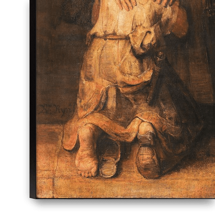 Bestelle Die Rückkehr des verlorenen Sohnes (Schnitt), Rembrandt als Reproduktion auf Leinwand, Alu-Dibond, als Poster, Fototapete oder Acrylglasbild.