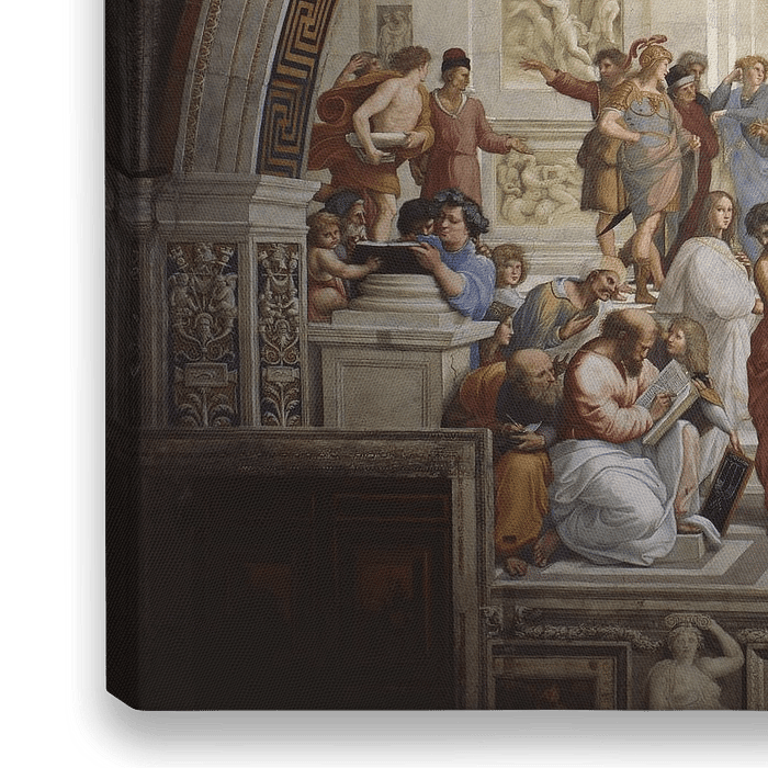 Bestelle Die Schule von Athen, Raffael als Reproduktion auf Leinwand, Alu-Dibond, als Poster, Fototapete oder Acrylglasbild.