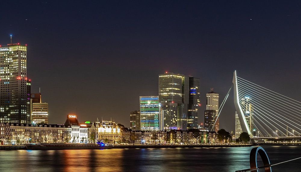 Über "Die Skyline und die Erasmusbrücke von Rotterdam am Abend"